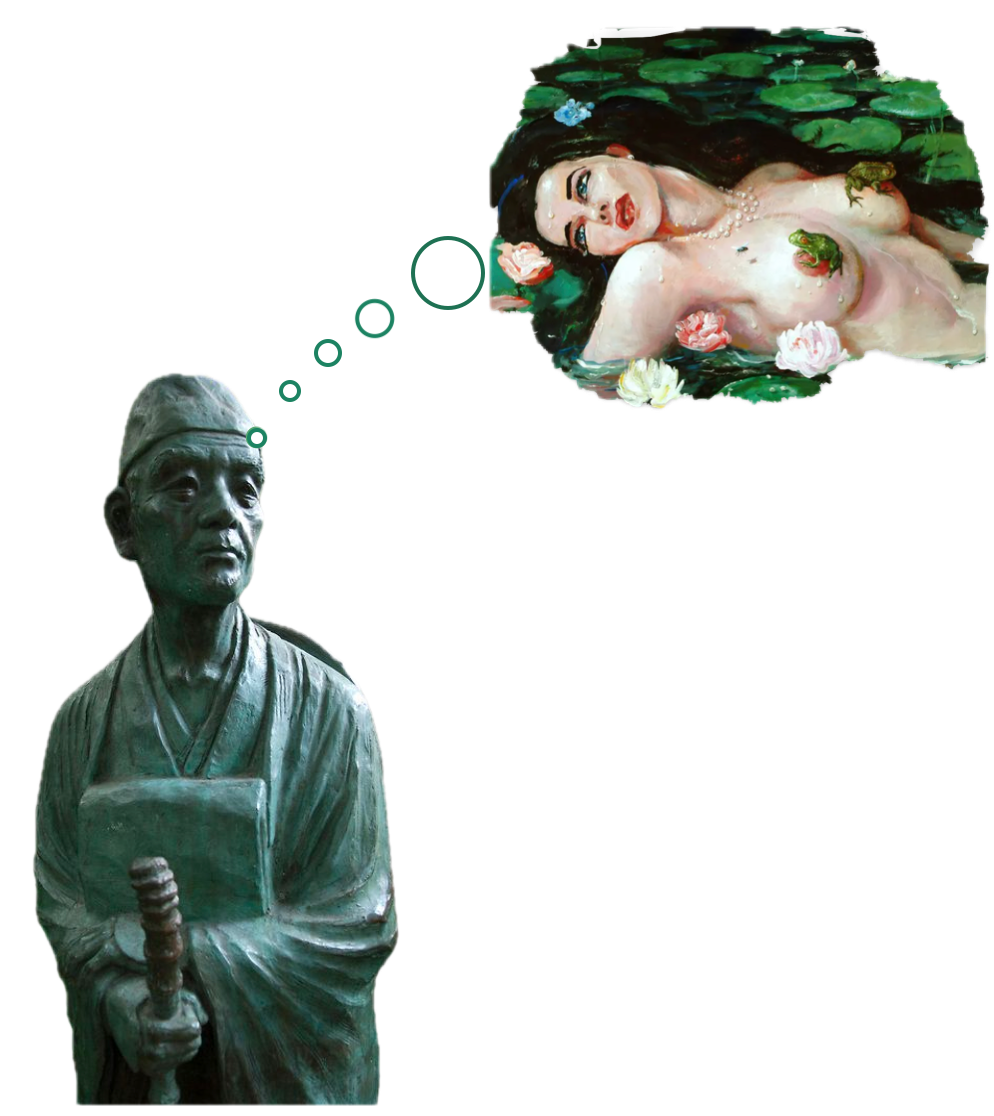 The unenlightened monk's so-called meditation began with his usual inability to not follow his thoughts, which ineradicably and inexorably formed an unending, unwanted and unbroken train crowded with brightly clad ideas and hale bugbears, naked, which smiled lasciviously like the scantily dressed hookers in the city.. But this time, for the first time in his life, his mental babbling was interrupted by an uncomfortable flash of searing white light. The white flash fluttered into waves and then the waves of white broke up like spindrift and blew into droplets which, when they hit the ground, splashed into full spectrum bursts of scintillae which whirled around, forming themselves into the characters of a Japanese parable which he had fearfully pushed from his mind many years ago. The galaxy of glowing lights that formed the parable which filled his inner eye was so bright that he blinked and squinted his physical eyelids. He was aghast when, after his inner eye had adjusted itself to the intensity of the lights, he could see that the brilliance came from what looked like a Japanese Las Vegas on steroids. Each of the parable's Japanese characters were comprised of enough tiny multi-hued neon lights to light up a mile high casino a mile long. Unlike the hope he found in the image of the monk groaning joyously inside the hot and noisy embrace of a zealous prostitute's luscious thighs, this one filled him with a dread heavier than the thought of death creeping up in fog on cat feet to his unsecured door.