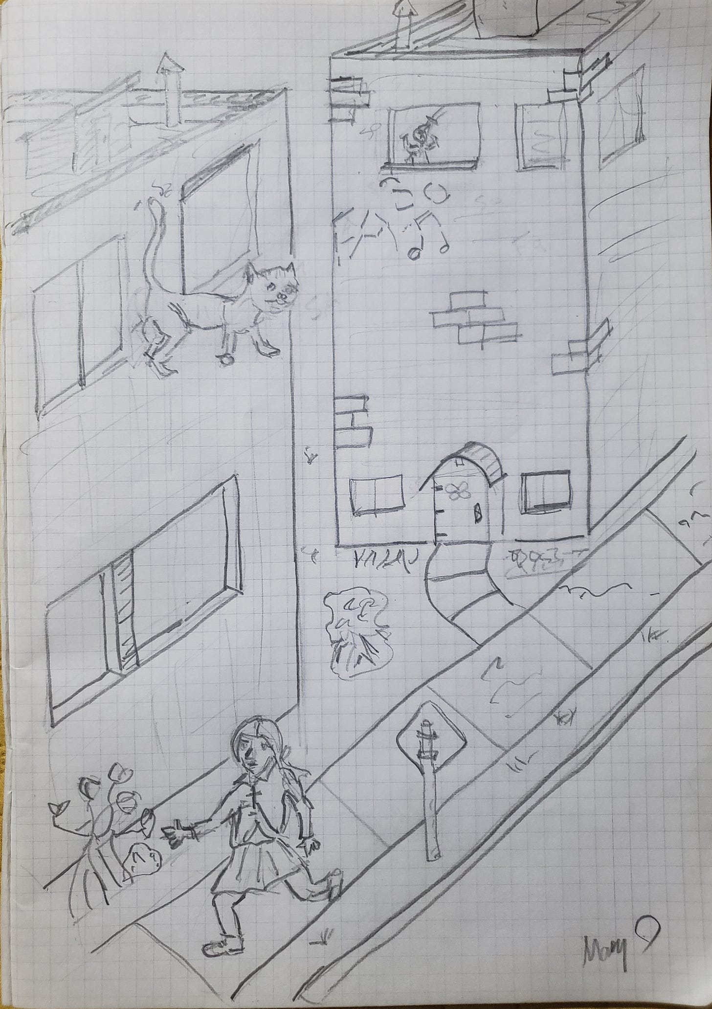 Unfortunately for one of his nine lives, and despite his conscious intent, Bilgewater's body righted itself as it always did and he landed feet first. Fortunately for Bilgewater and his other eight lives he suffered only a broken right front leg. Unfortunately for his ninety-seven year old owner, Grandma Bedlam, he had landed on her shoulder. His weight snapped her clavicle and knocked her face first into her lovingly tended rose bushes which scratched her face and hands and arms and tore her dress. Fortunately for Grandma Bedlam her head bounced off a large ornamental rock which knocked several minutes of consciousness from her and gave her a large goose egg and mild headache and completely restored the hearing she had lost when hit by a dump truck the day before her seventy-first birthday. Unfortunately for her, the first thing she heard since the dump truck's horn was her neighbour's nerve-jangling singing accompanied by the almost as jarring notes of her tom's howling which, combined with the blood that had seeped into her eyes from the scratches on her face and now covered her hands too, managed to convince her that she had died and gone to Hell. Unfortunately the shock of that realisation brought on a massive heart attack from which she did, in fact, die.