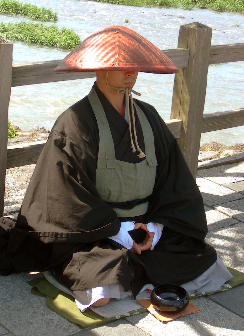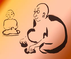 One day Baso, disciple of Ejo, the Chinese master, was asked by the master why he spent so much time meditating. Baso: "To Become a Buddha." The master lifted a brick and began rubbing it very hard. It was now Baso's turn to ask a question: "Why," he asked, "do you rub that brick?" "To make a mirror." "But surely," protested Baso, "no amount of polishing will change a brick into a mirror." "Just so," the master said: "no amount of cross-legged sitting will turn you into a Buddha.”