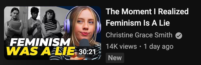 So, it worked. It [feminism] worked. (How I REALISED Men Were RIGHT All Along Christine Grace Smith. 5 Sept 2025. My emphasis and slight edits for clarity.)